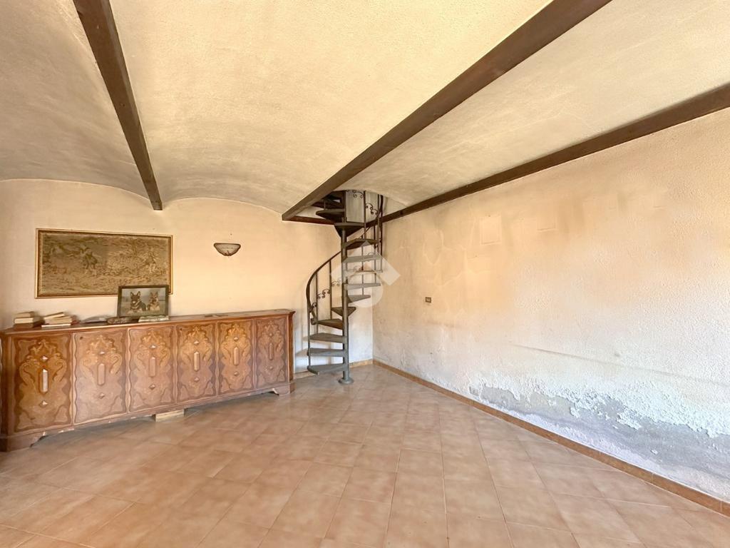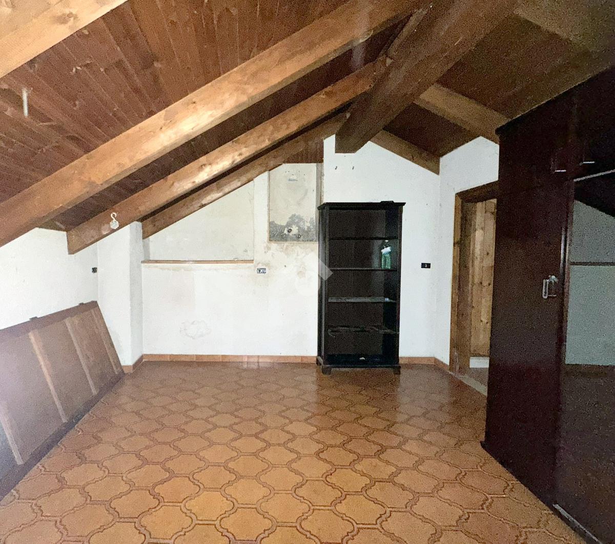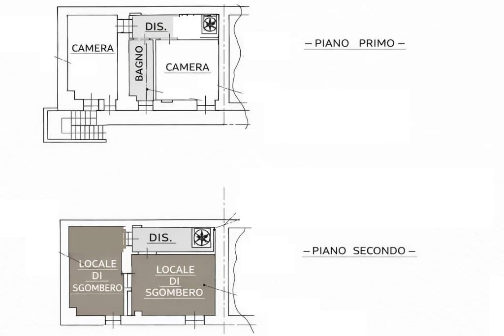 Una scala interna a chiocciola conduce al piano superiore, dove si trovano due camere da letto luminose, entrambe dotate di balcone, e un bagno finestrato completo di vasca e attacchi per la lavatrice. All’ultimo piano sono presenti due locali di sgombero, ideali come deposito, studio o area hobby. Gli infissi sono in legno monovetro, inoltre per quanto riguarda il riscaldamento vi è la predisposizione per il gas metano e la presenza di canna fumaria che permette l'installazione di stufa. Per l'acqua sanitaria è presente un boiler a legna.