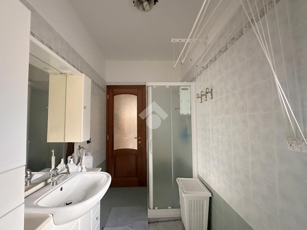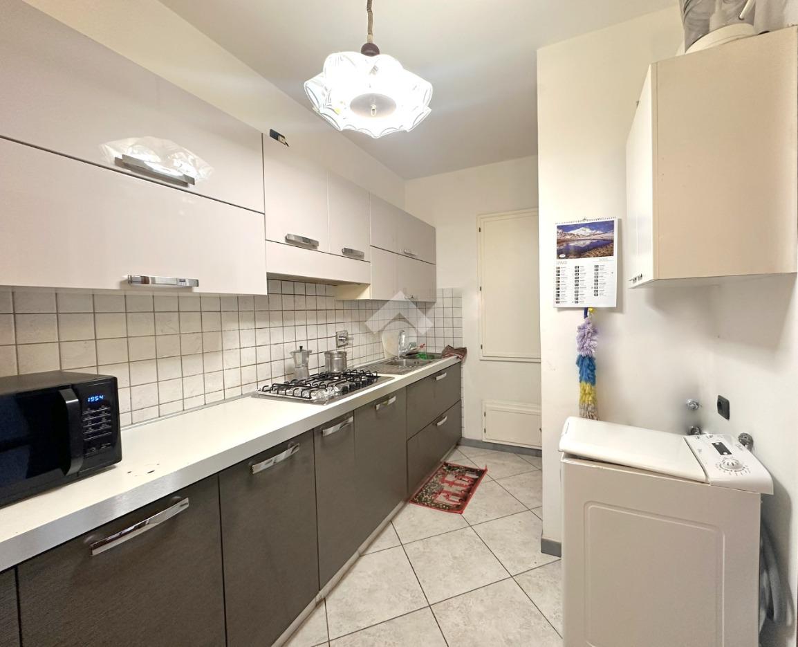 In zona tranquilla e riservata posto al primo piano, proponiamo ampio appartamento . L’ingresso si apre sulla zona giorno composta dall'ampio soggiorno luminoso e dotato di doppio balcone, la cucina lineare e funzionale è separata da eleganti porte scorrevoli. Un disimpegno divide il bagno finestrato di generosa metratura dotato di box doccia da un locale ripostiglio utile per lo stoccaggio. Un corridoio ampio separa la zona giorno dalla zona notte, composta da due camere da letto e da un secondo bagno di servizio. L'impianto di riscaldamento è autonomo alimentato da una caldaia a infissi sono in PVC con doppio vetro. A completare la proprietà è presente un box auto e un giardino esclusivo.