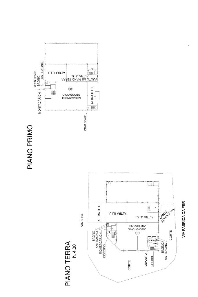 Al piano terreno si trovano due locali ad uso ufficio, due servizi igienici con antibagno e un ampio vano destinato a laboratorio. L’accesso è particolarmente funzionale grazie alla presenza di quattro ingressi indipendenti, carrai dotati di portelloni automatici con meccanismo scorrevole, oltre a quattro pedonali cosi da consentire l’ingresso diretto all’area produttiva. L’altezza massima di una delle aperture è di circa 3,80 metri. Sul medesimo livello è presente un vano scala di ampia metratura che collega il piano terra al piano primo. Nella parte retrostante è inoltre presente un vano grezzo, predisposto per un eventuale installazione di un montacarichi.