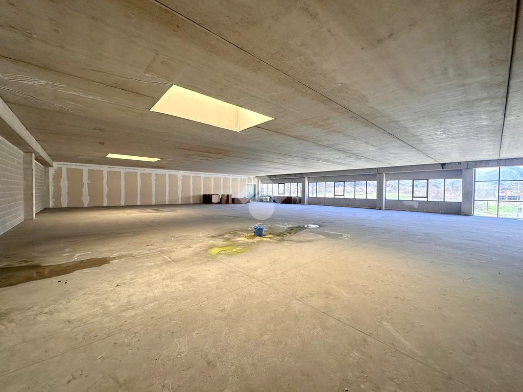 Il piano primo,può anch’esso essere accessibile carrabilmente, è caratterizzato da ampie vetrate che garantiscono un’ottima luminosità e visibilità. Su questo livello si sviluppa un ampio locale ad uso magazzino, un ulteriore vano utilizzabile come ufficio e un servizio igienico. Sempre al piano è presente l’accesso al vano scala con porta tagliafuoco, che conduce sia al piano terra sia all’unità abitativa.