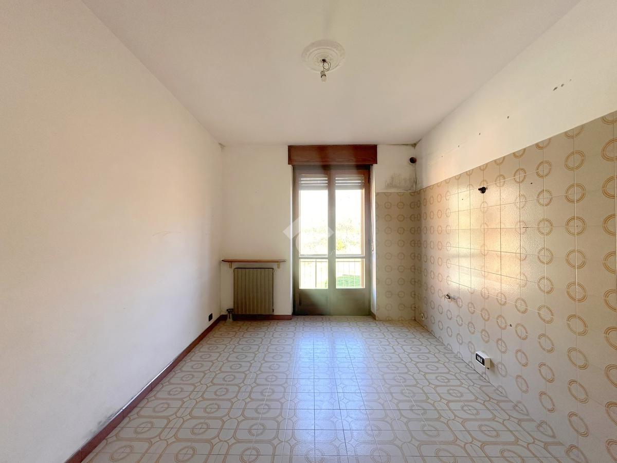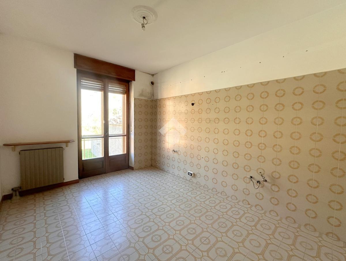 Al piano terra si trova un trilocale composto da un soggiorno, una cucina abitabile, una spaziosa camera da letto e un bagno finestrato e dotato di box doccia, con attacchi per la lavatrice. L’ambiente è ben distribuito e funzionale.
