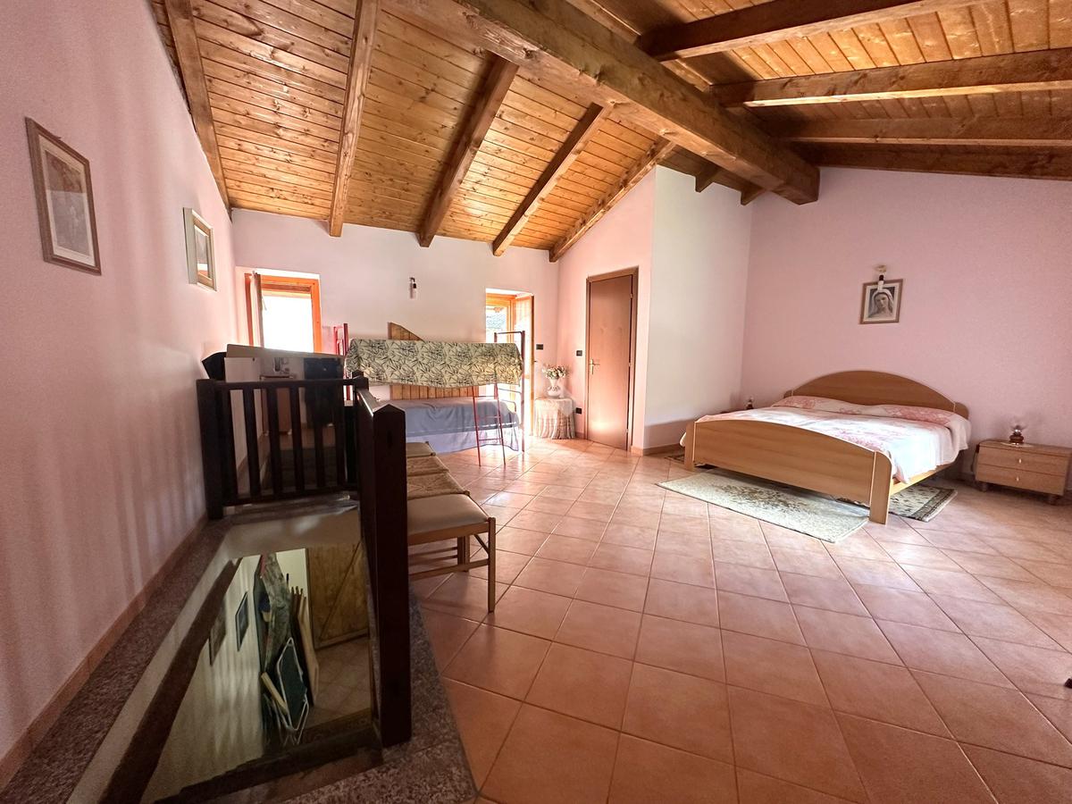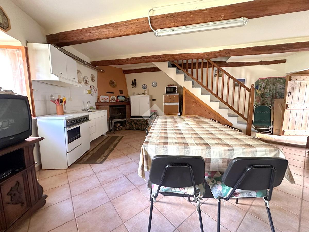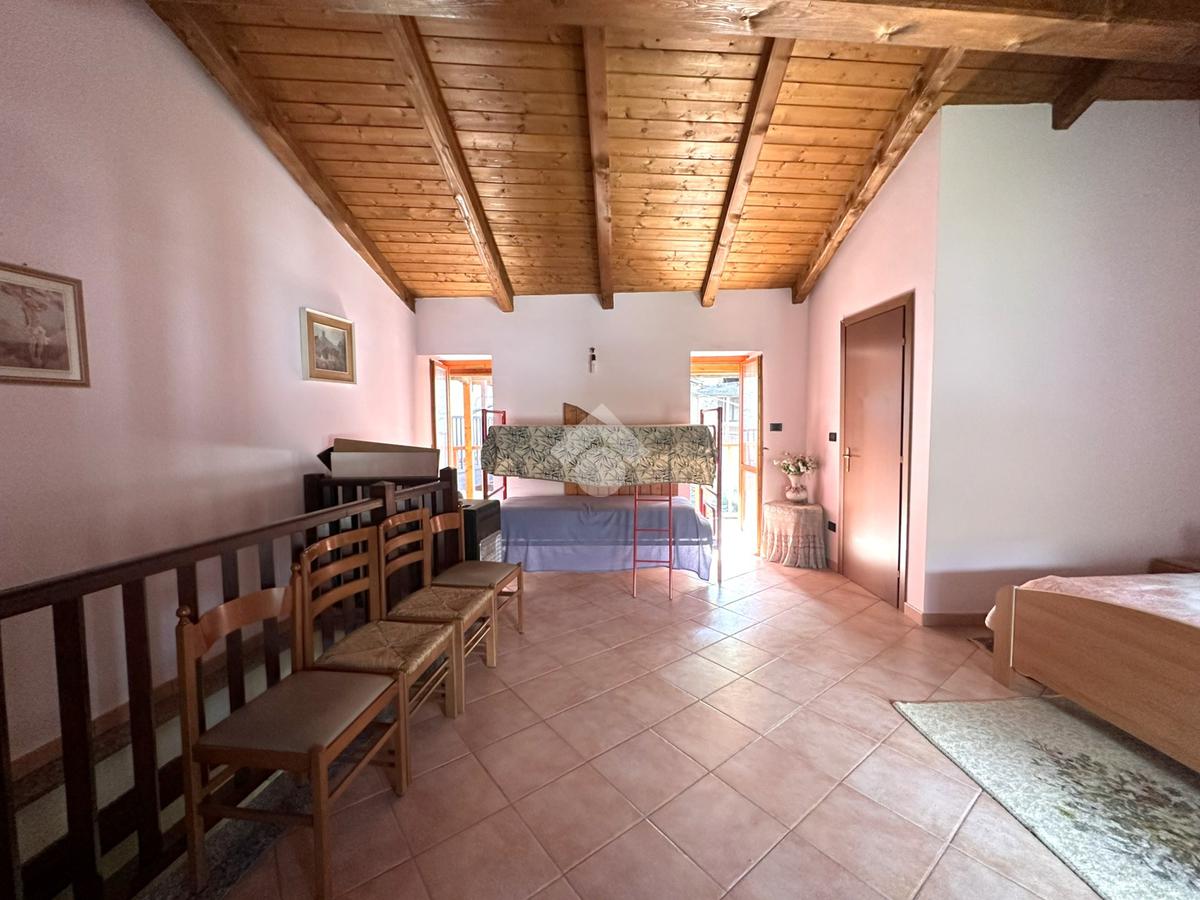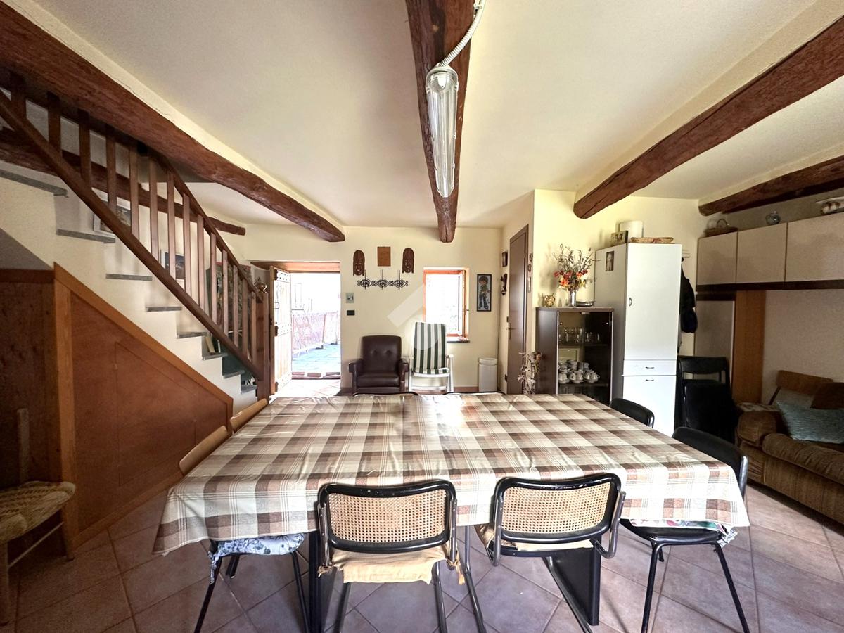 L'immobile si sviluppa su due piani abitativi. L’ingresso principale si apre su ampio soggiorno con zona living sulla cucina, adiacente è presente un bagno finestrato dotato di box doccia. Al primo piano tramite vano scala interno, si accede alla zona notte che comprende una camera da letto che gode di un accesso diretto al balcone, oltre alla possibilità di avere un secondo bagno finestrato. Il riscaldamento è gestito da un camino a legna. Gli infissi sono in legno con vetrocamera.