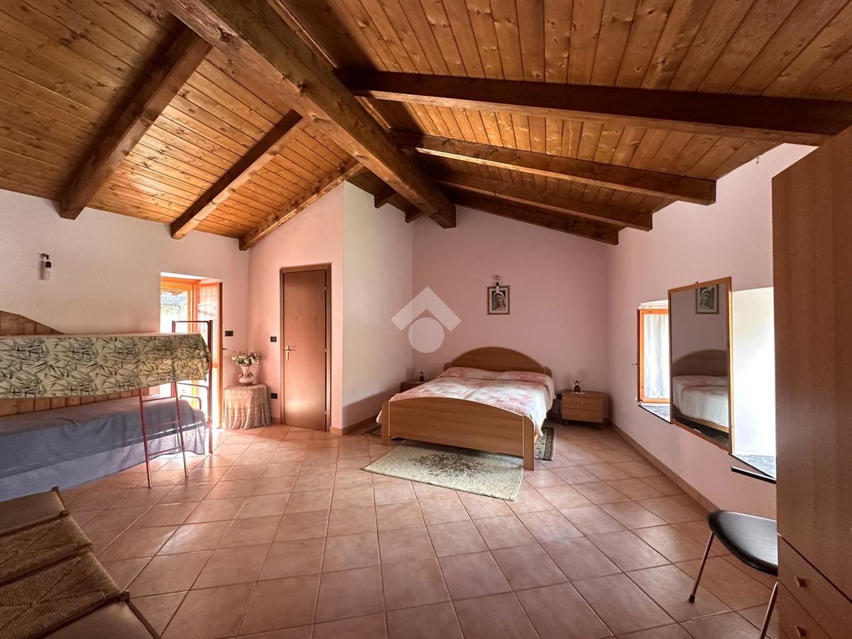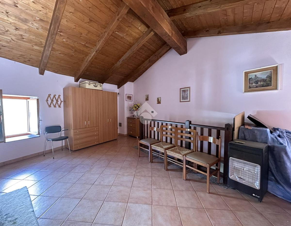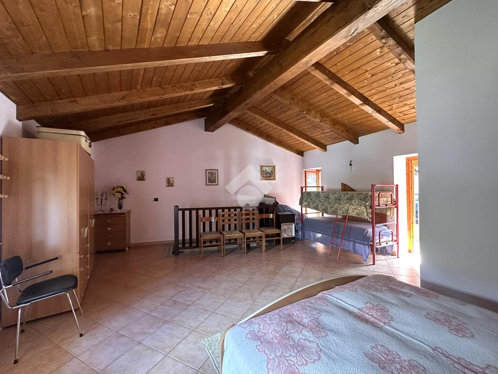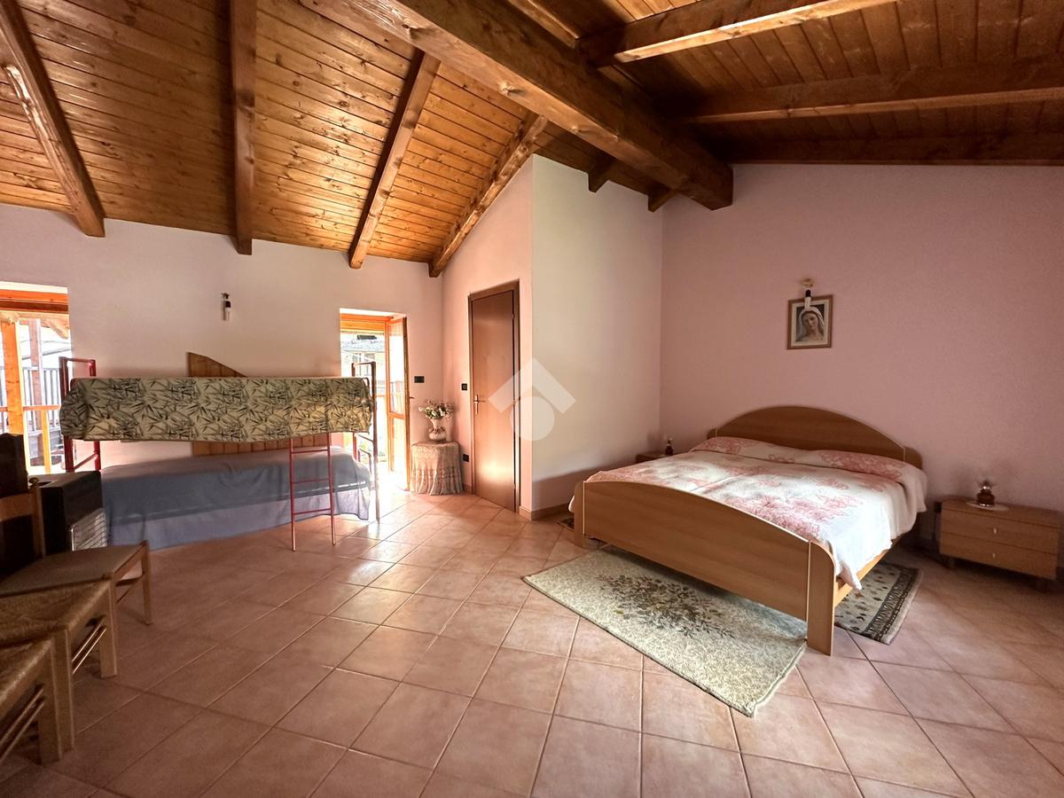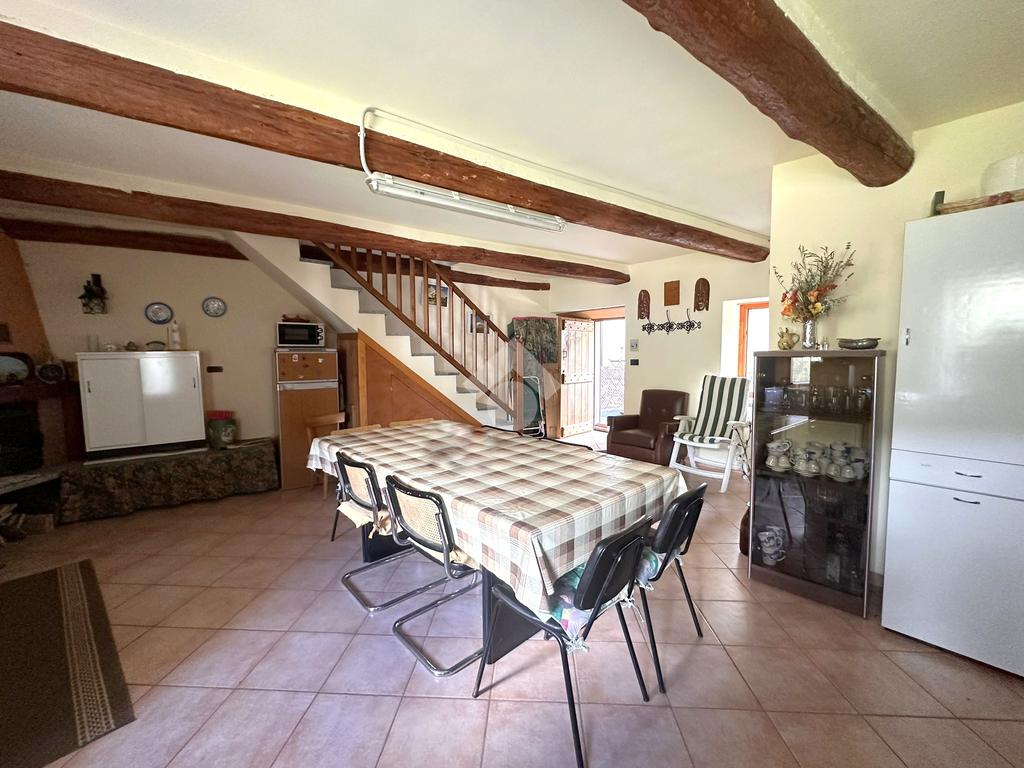 L'immobile si sviluppa su due piani abitativi. L’ingresso principale si apre su ampio soggiorno con zona living sulla cucina, adiacente è presente un bagno finestrato dotato di box doccia. Al primo piano tramite vano scala interno, si accede alla zona notte che comprende una camera da letto che gode di un accesso diretto al balcone, oltre alla possibilità di avere un secondo bagno finestrato. Il riscaldamento è gestito da un camino a legna. Gli infissi sono in legno con vetrocamera.